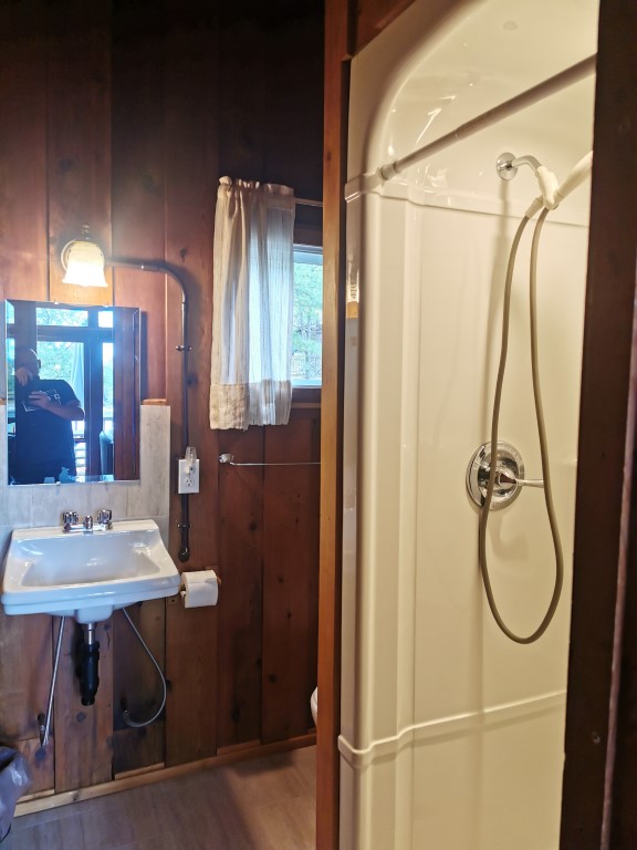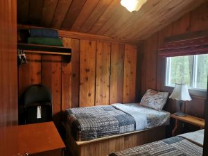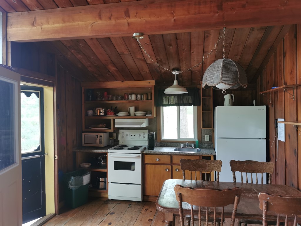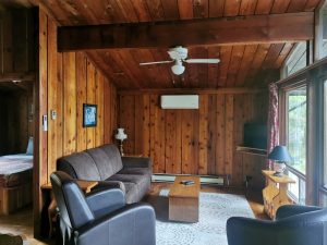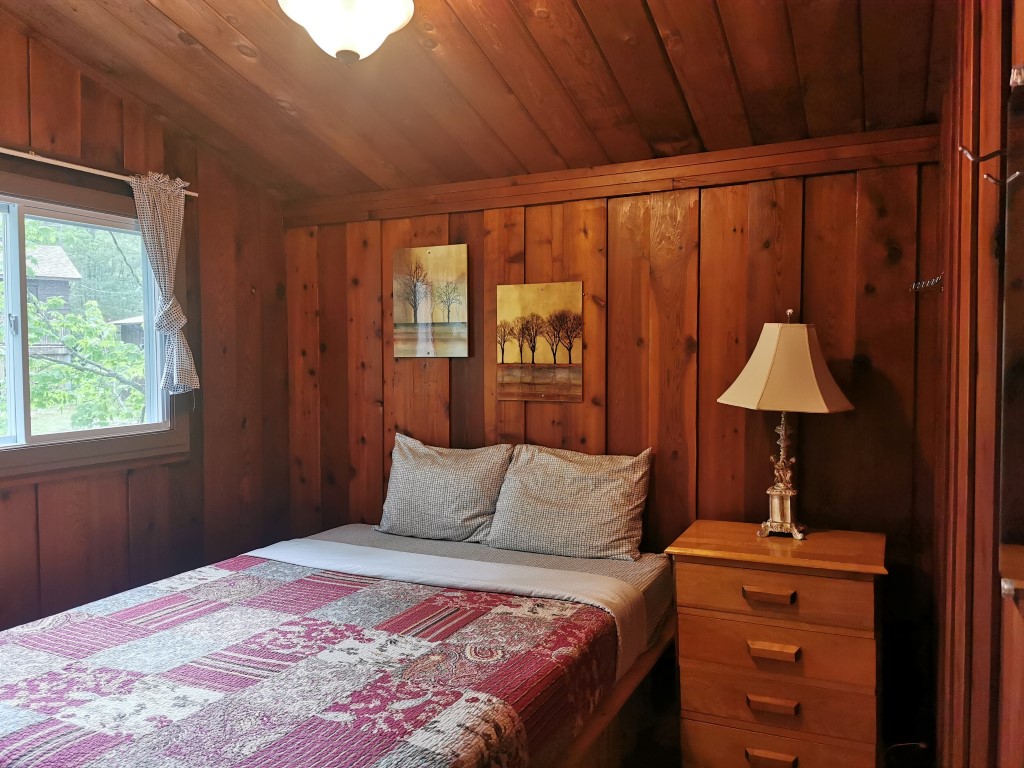 Spacious 2 bedroom cottage with a bigger bathroom and living room area. A queen bed and 2 single beds sleep up to 4 people, with a fabulous view of bay sunsets right from the deck. Max. occupancy 5 adults or 2 adults and 4 children under 13.