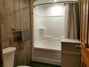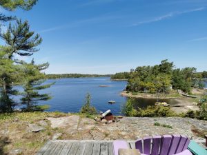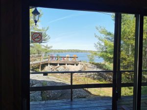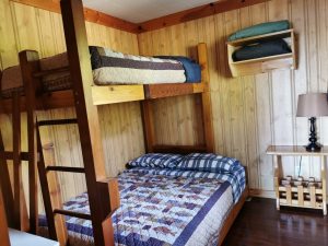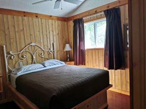 Chalet style 3 bedroom executive cottage with a queen, 2 double, and 1 single bed. It also features a Keurig and drip coffee maker, 3 piece bath with separate vanity area, fireplace and air conditioning. Stunning view from your private rock top sitting area or from the extra large deck. This cottage is also available for winter rental. Max. occupancy 6 persons.